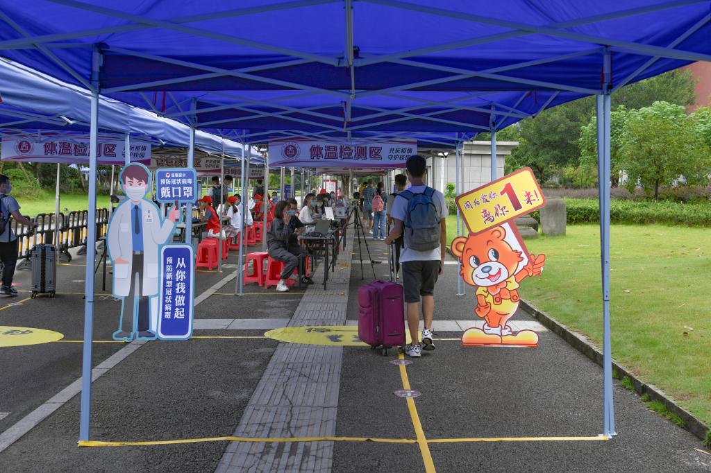 9月11日,学校在忠山校区运动场、城北校区东大门和北大门分别设立报到点集中接待学生返校报到。学生依次通过入校通道、测温门、一卡一码核验、扫描一码通登记后无异常者直接入校,返回各公寓入住。既简洁高效又精准核验,有效避免了人员聚集风险,整个返校报到现场秩序井然,安全平稳。报到当天,学校党委副书记、纪委书记李尚志,党委副书记刘毅,副校长刘广益、聂敏海来到报到现场,仔细查看报到流程及各点位工作开展情况,欢迎返校学子,并勉励同学们在做好疫情防控常态化各项防护措施的同时,以更加昂扬的斗志、阳光的心态迎接新学期的学习生活。截至9月12日上午9点,实际报到学生9419人,其中忠山校区3874人,城北校区5545人。