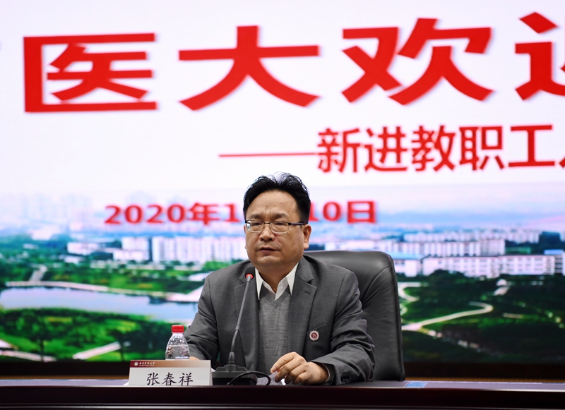 仪式活动在庄严的国歌声中拉开了序幕。张春祥代表学校对全体新进教职工表示欢迎,表示学校将竭尽全力为大家提供广阔的发展平台,希望各位新进教职工能够很快融入西南医大这个充满爱的大家庭,以饱满的精神状态投入到工作中,以崭新的面貌、积极的态度去迎接新的挑战。同时,他对新进教职工提出三点要求:一是坚持立德树人初心,牢记为党育人、为国育才使命;二是积极修炼自身,坚定以研促教、教研相长;三是强化团队协作精神,坚定爱岗爱校情怀。