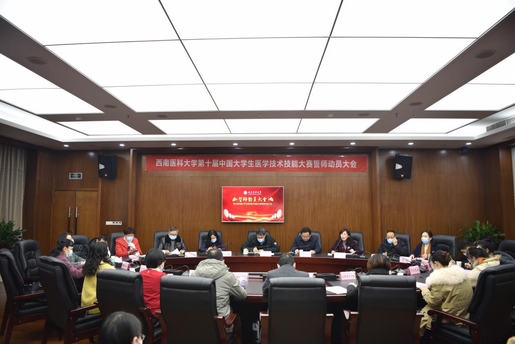 1月15日下午,第十届中国大学生医学技术技能大赛誓师大会暨比赛培训大会在德诚楼一会议室召开。学校党委书记廖斌、主持行政全面工作副校长张春祥、党委副书记刘毅、副校长何涛出席会议。