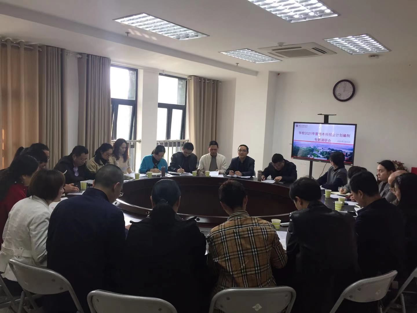 为深入推进招生改革,切实做好学校2021年普教招生工作,学校于3月24日在德诚楼220会议室召开2021年招生计划编制专题调研会。学校党委副书记刘毅,以及发展规划处、财务管理处、教育评价与教师发展中心等职能部门负责人、17个二级院系领导参加了会议。会议由学生工作部部长谭群英主持。