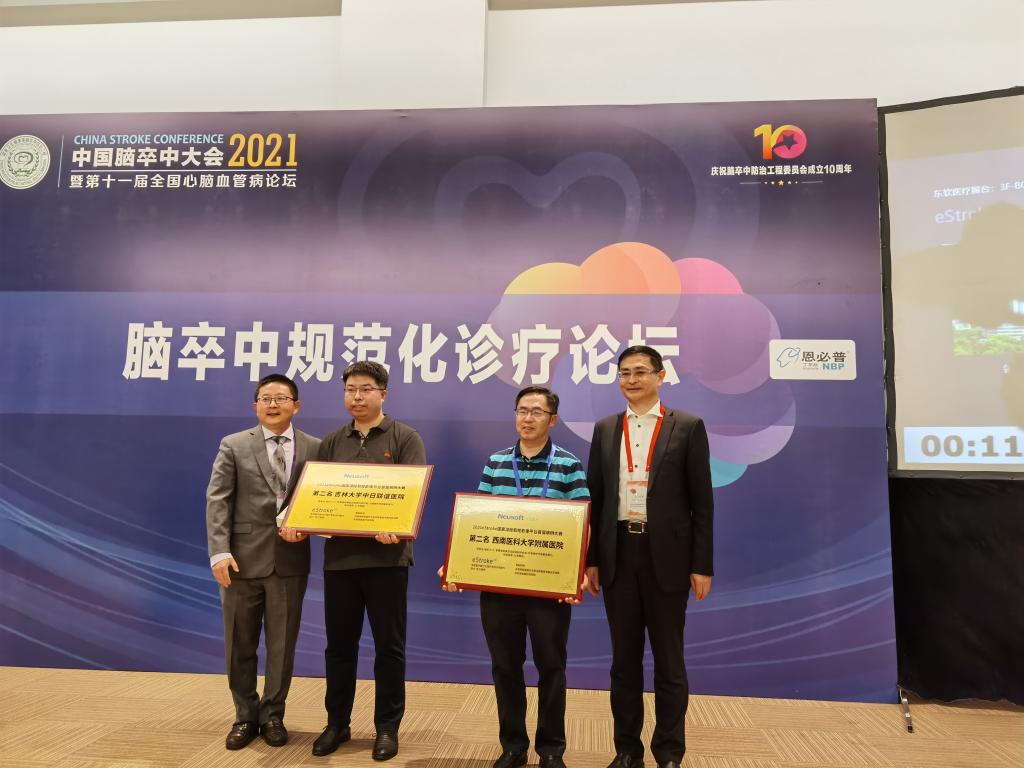 eStroke国家溶栓取栓影像平台是基于缺血性脑卒中半暗带、脑微出血、脑侧支循环定量评价的云服务平台,可以实现溶栓、取栓多模态影像学精准评价,旨在实现全国卒中中心医院与国家远程卒中中心影像评估的同质化。今年,附属医院神经内科副主任李经伦教授团队提交的溶栓取栓影像病例,荣获第二名。