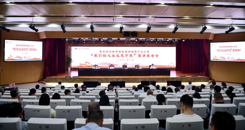 鲜花敬英雄,国歌聚人心。5月27日,在kaiyun官方网站入口城北校区第一学术报告厅内,伴随着阵阵掌声,党史学习教育省委宣讲团第十五分团(“五老”、英雄模范先进典型宣讲分团)四位成员走进kaiyun官方网站入口,为学校的全体校领导、处级领导干部、教师代表和学生代表近300人开展主题为“我们的心永远忠于党”的宣讲报告会。