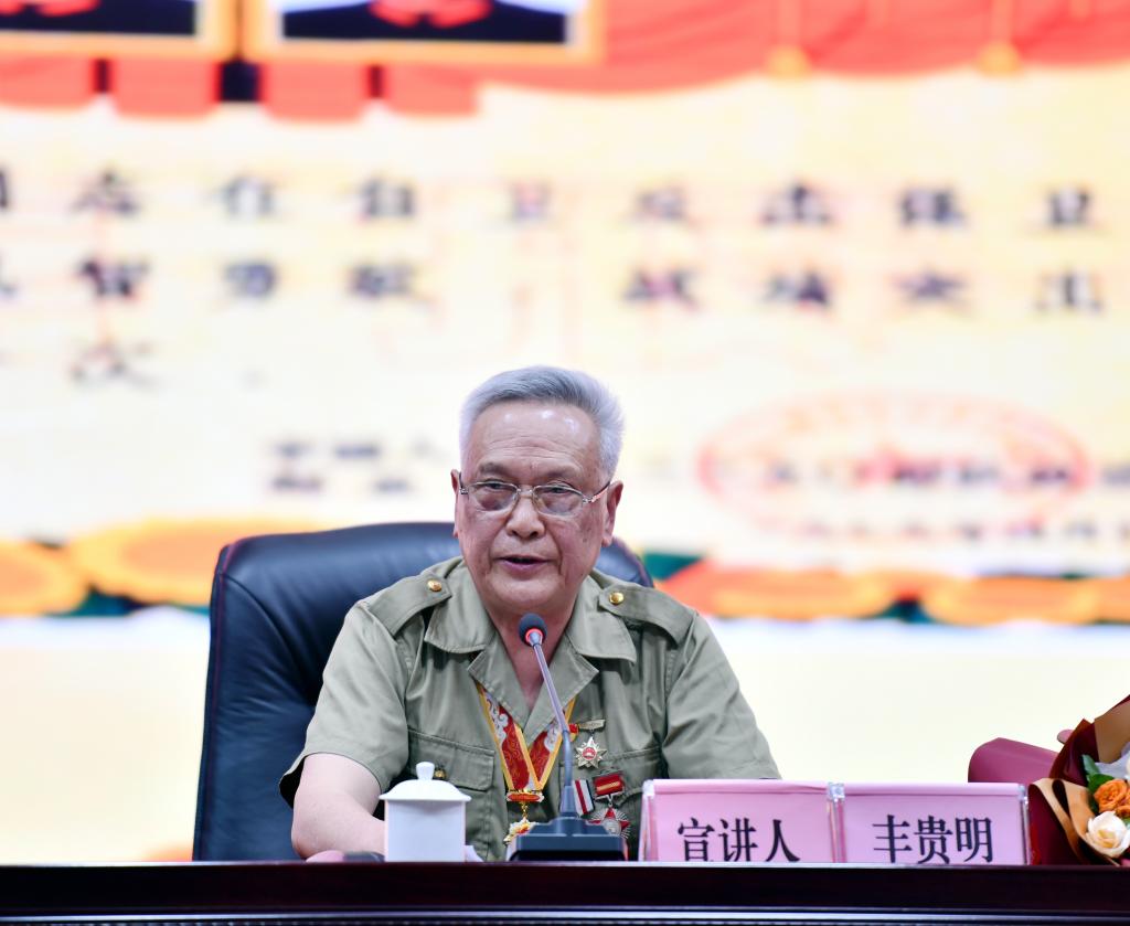 一等战斗功臣丰贵明,做了精彩的宣讲报告后,接受记者采访时寄语年轻学子们要不忘过去,珍惜如今的幸福生活,永远跟党走,吃苦在前,享受在后,为党和国家贡献自己的力量。