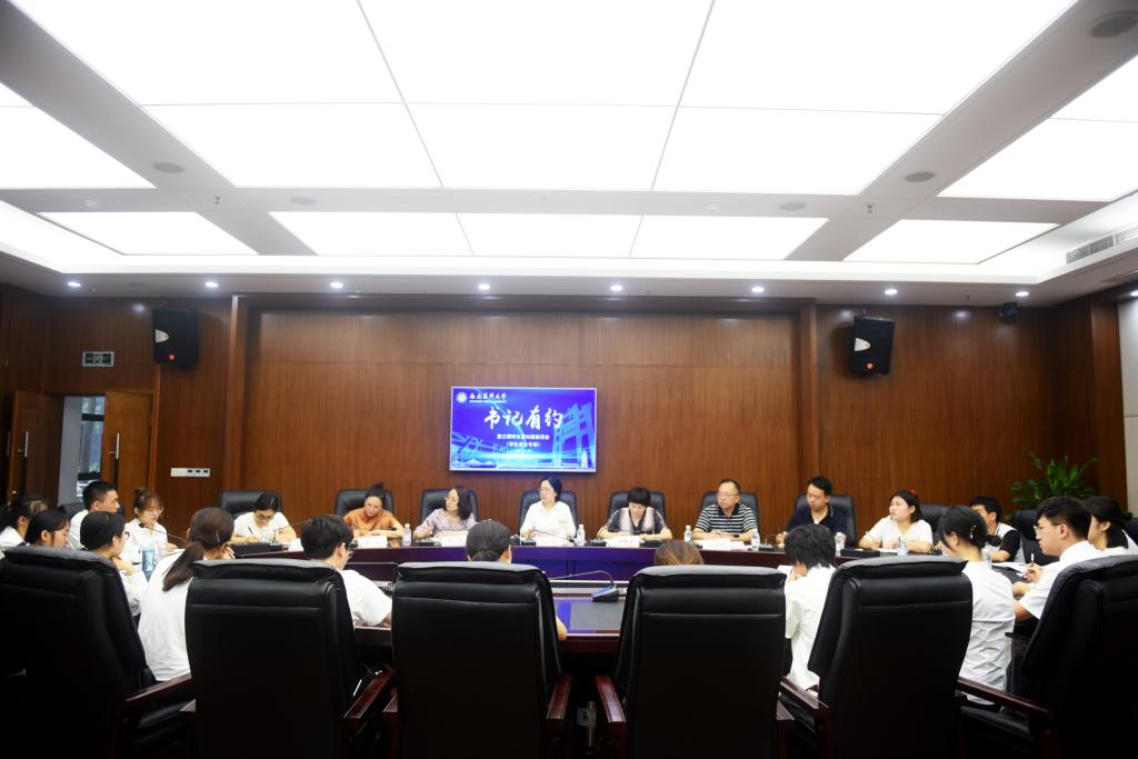 为有力推进“我为群众办实事”实践活动,围绕学生关注热点问题,切实帮助学生解决实际遇到的困难,6月24日上午,学校在城北校区一会议室举办第三期“书记有约”学生面对面座谈会。此次活动邀请学校党委副书记刘毅作为主讲嘉宾,与来自17个院系学生代表围绕“学生安全”主题进行沟通交流。参加此次座谈会的还有党政办、学生工作部、保卫处、教务处、基建后勤处等相关领导和人员。座谈会由学生工作部副部长易娟主持。