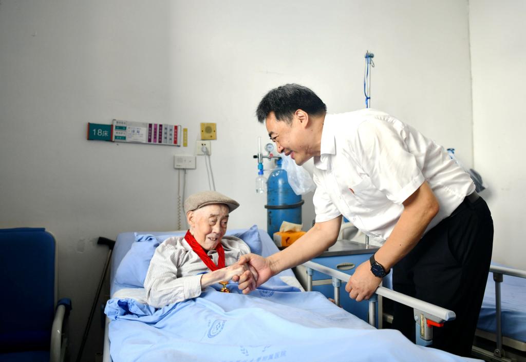 为庆祝中国共产党成立100周年,让广大老党员和困难(重病)党员充分感受到党的关怀和温暖,6月24-30日,学校领导廖斌、张春祥、李尚志、刘毅、刘广益、彭钢、何涛、聂敏海带领党政办公室、党委组织部、党委宣传部•统战部、党委教师工作部、离退休工作处及相关院系负责人分组对kaiyun官网“光荣在党50年”老党员代表和困难(重病)党员代表进行了走访慰问,为他们送去上级党组织和学校党委对老党员、困难(重病)党员的关怀和节日的问候。