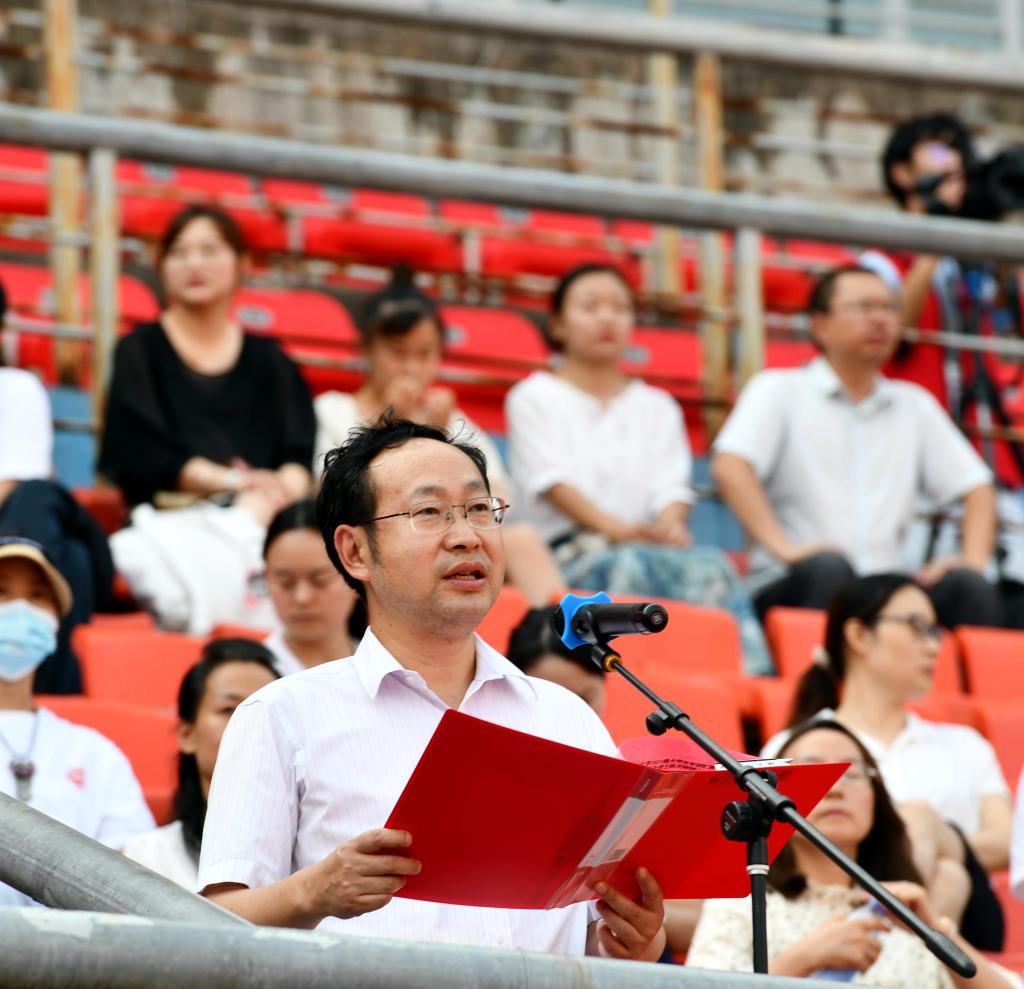 校党委副书记、工会主席刘毅宣读《2021级新生军训工作先进集体、先进个人表彰决定》。