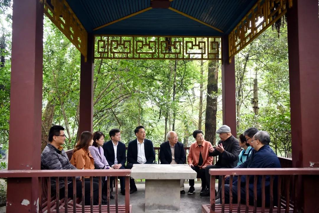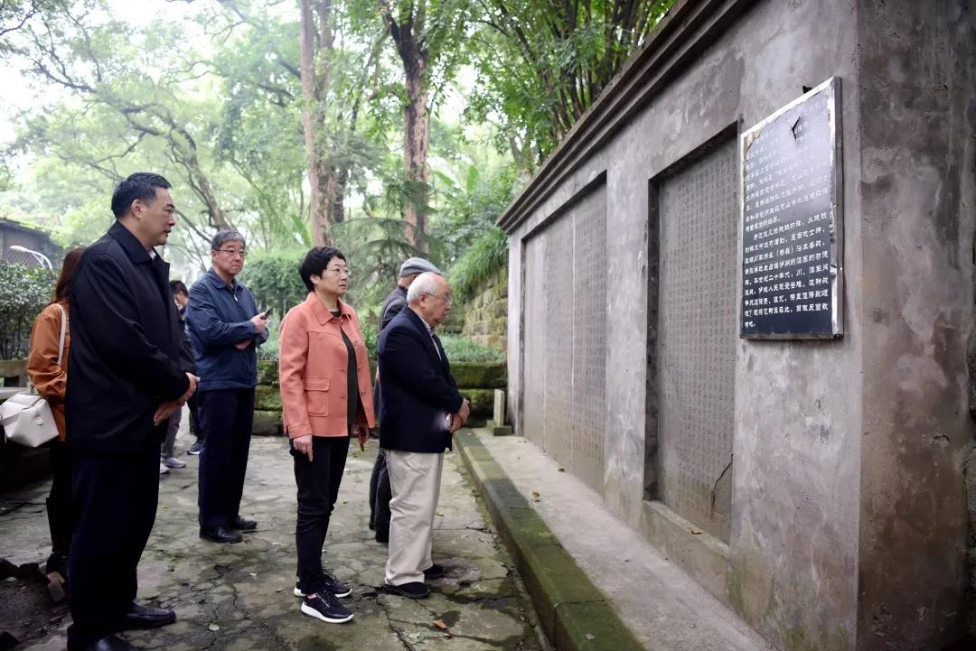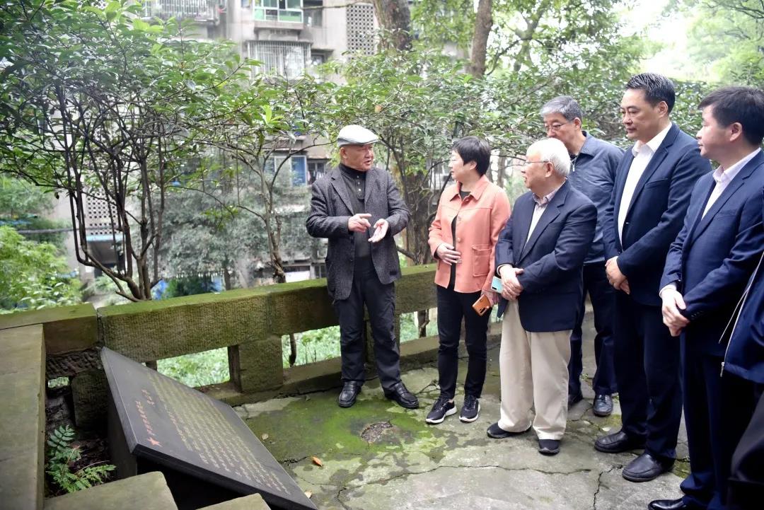 在忠山凉亭,恽梅一行驻足瞻仰,缅怀追思。大家认真聆听恽代英成立泸县社会主义青年团的故事,追思默哀,感受当年革命先辈们的革命热情,感慨革命胜利成果来之不易。当听到恽代英在忠山植树的故事时,恽梅不禁感慨,“忠山校区环境优美古朴厚重,我看着这些树,觉得特别亲切,也许它们中的一棵就是我爷爷当年种下的……”