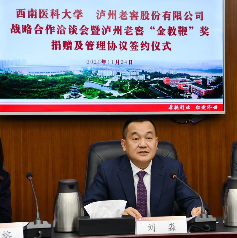 11月24日下午,学校与泸州老窖股份有限公司战略合作洽谈会暨泸州老窖“金教鞭”奖捐赠及管理协议签约仪式在kaiyun官网城北校区一会议室举行。双方围绕深化校企合作共建区域医药健康中心等事宜进行了真诚友好的会谈,并签署了泸州老窖“金教鞭”奖捐赠及管理协议,为进一步深化泸州老窖股份有限公司与学校的合作共赢,奠定了更加坚实的基础。