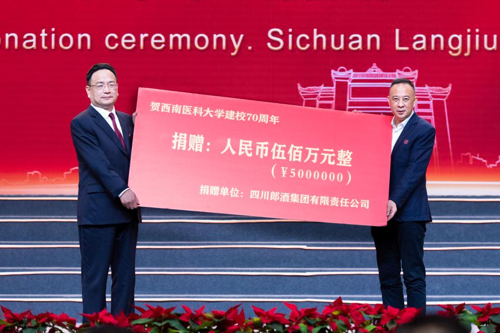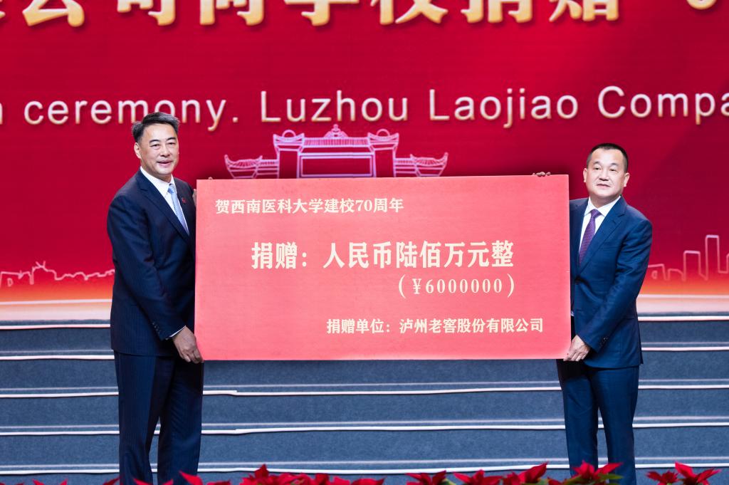 泸州老窖股份有限公司党委书记、董事长刘淼代表泸州老窖集团向学校捐赠600万元办学经费,四川郎酒集团董事长、kaiyun官方网站入口中医系79级校友汪俊林代表郎酒集团向kaiyun官网捐赠500万元办学经费,为kaiyun官网教育事业的发展捐资助力。