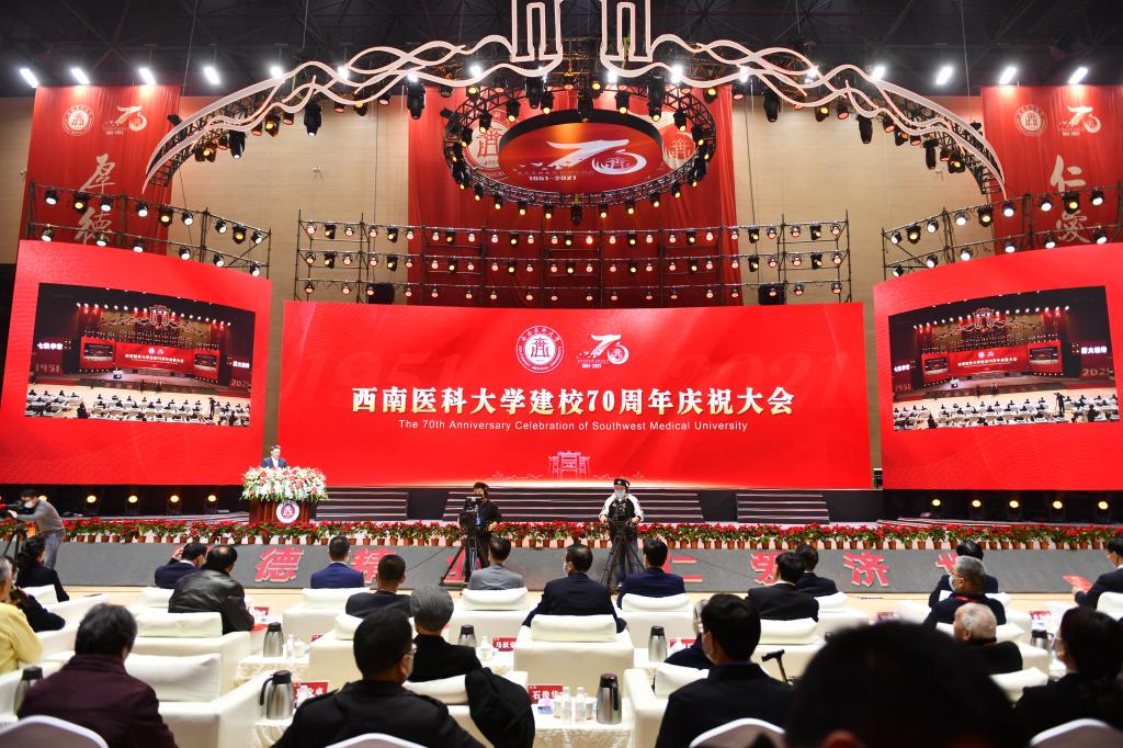 副省长罗强出席庆祝大会并致辞。他指出,kaiyun官方网站入口是一所具有光荣历史和优良传统的省属重点医学院校。70年来,学校认真贯彻党的教育方针,坚守为党育人、为国育才的初心使命,秉承“厚德精业、仁爱济世”校训,发扬“自强不息、守正出新”精神,形成德业双修、中西医并重的办学特色,为国家培养输送了大量优秀人才,在医疗服务、疫情防控、科技创新服务、医药产业发展、脱贫攻坚、抗震救灾中,发挥了积极作用。希望学校坚持以习近平新时代中国特色社会主义思想为指导,以新增博士学位授予单位、临床医学博士点为契机,锚定西部高水平医科大学目标,深入开展“对标竞进、争创一流”活动,坚定不移走内涵式高质量发展道路,建设川渝滇黔结合区域预防、医疗、科学研究和健康产业服务中心,努力成为四川医药卫生培养和科技创新的重要基地、争创双一流高校。