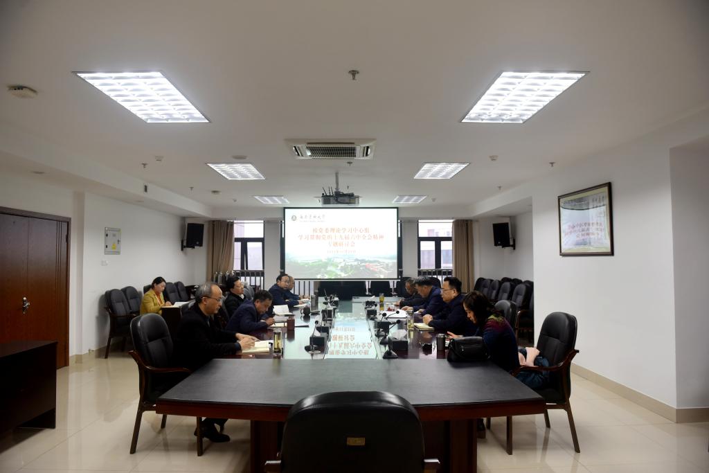 11月29日,学校党委理论学习中心组在德诚楼621会议室召开专题学习会,集中学习研讨党的十九届六中全会精神。中心组组长、党委书记廖斌主持学习会。