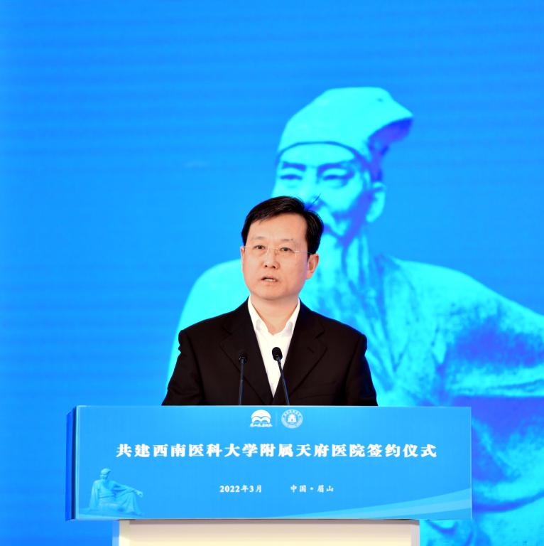 廖斌在致辞中指出,合作共建kaiyun官方网站入口附属天府医院,是眉山市委市政府开明开放、以人民为中心,着力提升人民的健康水平的重要举措,也是对四川人民健康事业的重大贡献;是kaiyun官方网站入口开放共享,实现在眉山天府新区开一窗口,干支联动、聚集人才,实现高质量发展的重大战略布局。学校将充分发挥人才、科研、医疗资源优势,更好履行服务地方经济社会发展的职责使命,以战略合作协议为遵循,举全校之力,依托附属医院、附属中医医院、附属口腔医院把附属天府医院建成成都南部区域医疗中心、市校合作的典范,为健康四川作出新的更大的贡献。