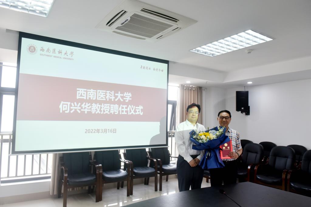 聘任仪式上,刘文胜宣读了何兴华聘任文件,张春祥向何兴华教授颁发了聘书。