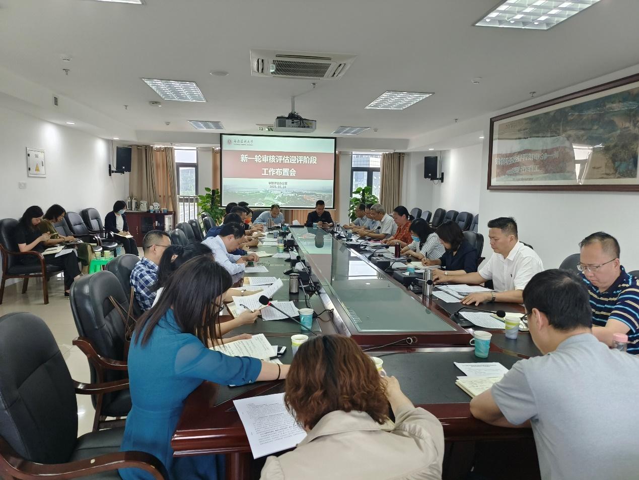 5月24日上午,学校在德诚楼521会议室召开新一轮本科教育教学审核评估迎评阶段工作部署会。学校党委常委、副校长何涛,各二级院系、相关职能部门相关人员参会。会议由教育评价与教师发展中心主任赵琼主持。