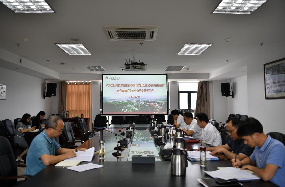 7月10日上午,学校在德诚楼621会议室组织召开学习贯彻习近平新时代中国特色社会主义思想主题教育暨校党委中心组专题学习会,围绕“中国式现代化的中国特色、本质要求和重大原则”“文化传承发展座谈会精神”“习近平总书记关于党的自我革命重要论述”“习近平总书记关于坚决防止和克服形式主义重要指示”等内容开展学习。校党委书记、中心组组长廖斌主持会议。