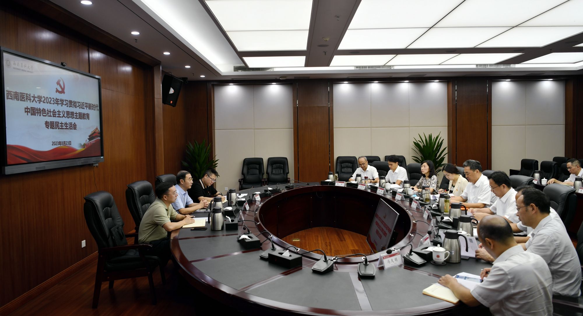 廖斌代表班子作了三点表态发言:一是学校将坚持以学铸魂,锤炼绝对忠诚的政治品格。学校党委将坚持不懈用习近平新时代中国特色社会主义思想凝心铸魂,坚定理想信念、铸牢对党忠诚、站稳人民立场,不断增强坚定拥护“两个确立”、坚决做到“两个维护”的思想自觉、政治自觉、行动自觉。持续做好学习贯彻习近平新时代中国特色社会主义思想的深化、内化、转化工作,不断增进对党的创新理论的政治认同、思想认同、理论认同、情感认同。二是学校将坚持以学增智,不断汲取解难题的智慧力量。牢牢把握习近平新时代中国特色社会主义思想的世界观、方法论和贯穿其中的立场观点方法,用以分析新情况,解决新问题,推动新发展,持之以恒从党的科学理论中悟规律、明方向、学方法、增智慧。三是学校将坚持以学正风,树立廉洁奉公务实的时代新风。要将民主生活会问题整改融入主题教育整改整治,扎实做好“后半篇文章”。认真研究细化整改措施,逐一建档、逐个销号、限期解决。教育全体党员干部牢固树立正确权力观,筑牢思想防线,坚守法纪红线,弘扬清廉俭朴之风,坚定不移把全面从严治党向纵深推进。四要坚持以学促干,集中精力抓好发展第一要务。树牢正确的政绩观,鼓足干事创业的精气神。贯彻落实学校党代会精神,深入实施“138”发展战略,全力推进国家一流学科建设、国家区域医疗中心建设和治理能力现代化建设,争取早日全面建成特色鲜明的西部高水平医科大学。
