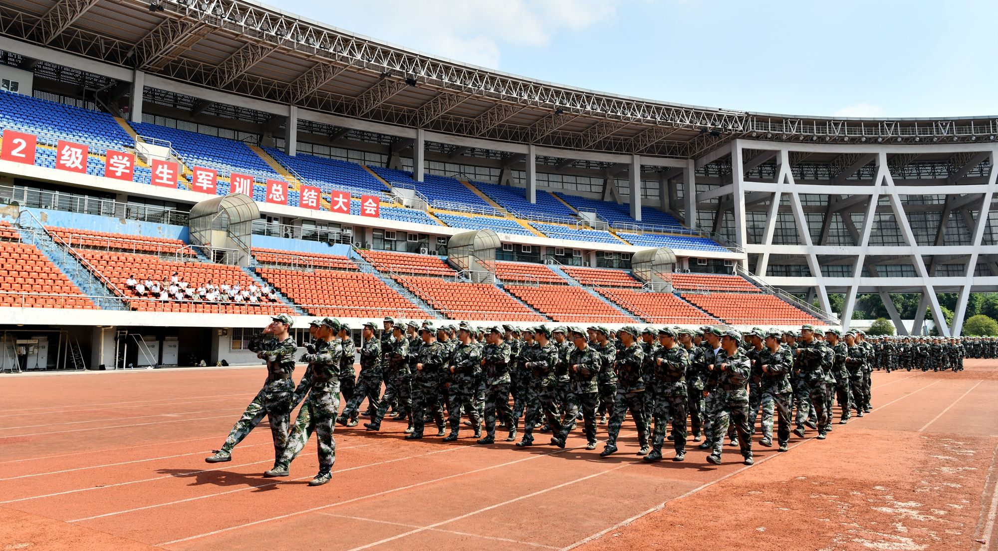 2022级4100余名学生完成军事技能训练后,在军训总结大会上高质量展示了分列式、擒敌术、匕首术等军训成果。学校武装部部长张立新宣读了2022级学生军训优秀政工干部、优秀学员的决定。