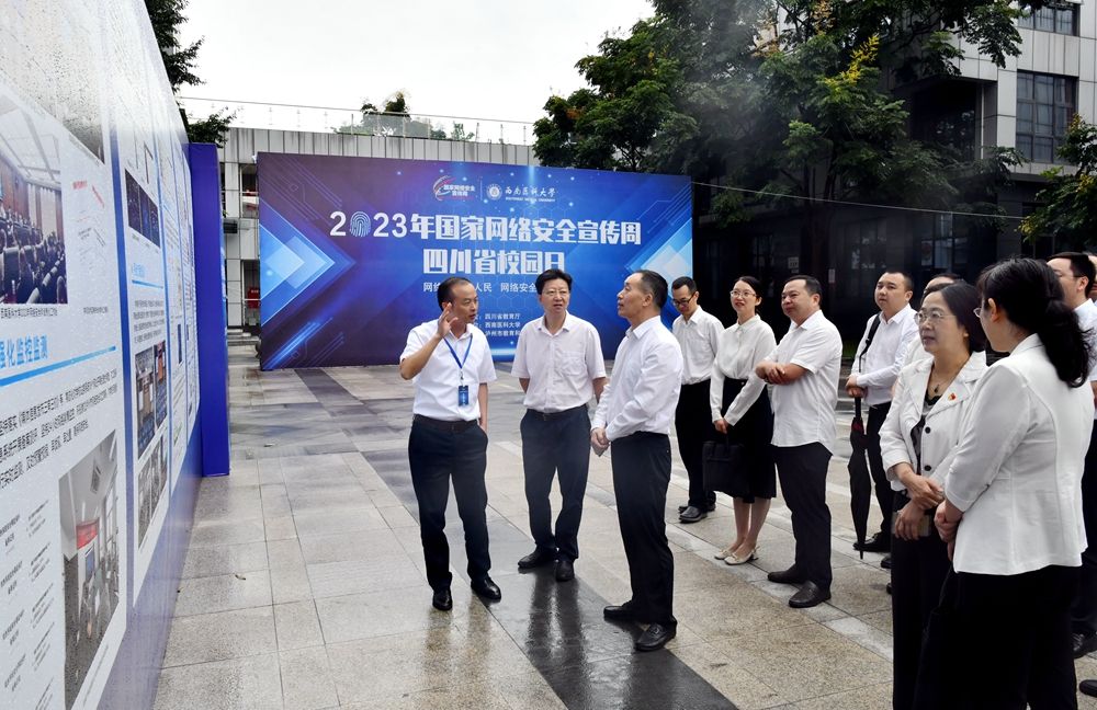 与会领导共同启动“校园日”活动,随后,参观了泸州市及kaiyun官方网站入口网络安全宣传展板。
