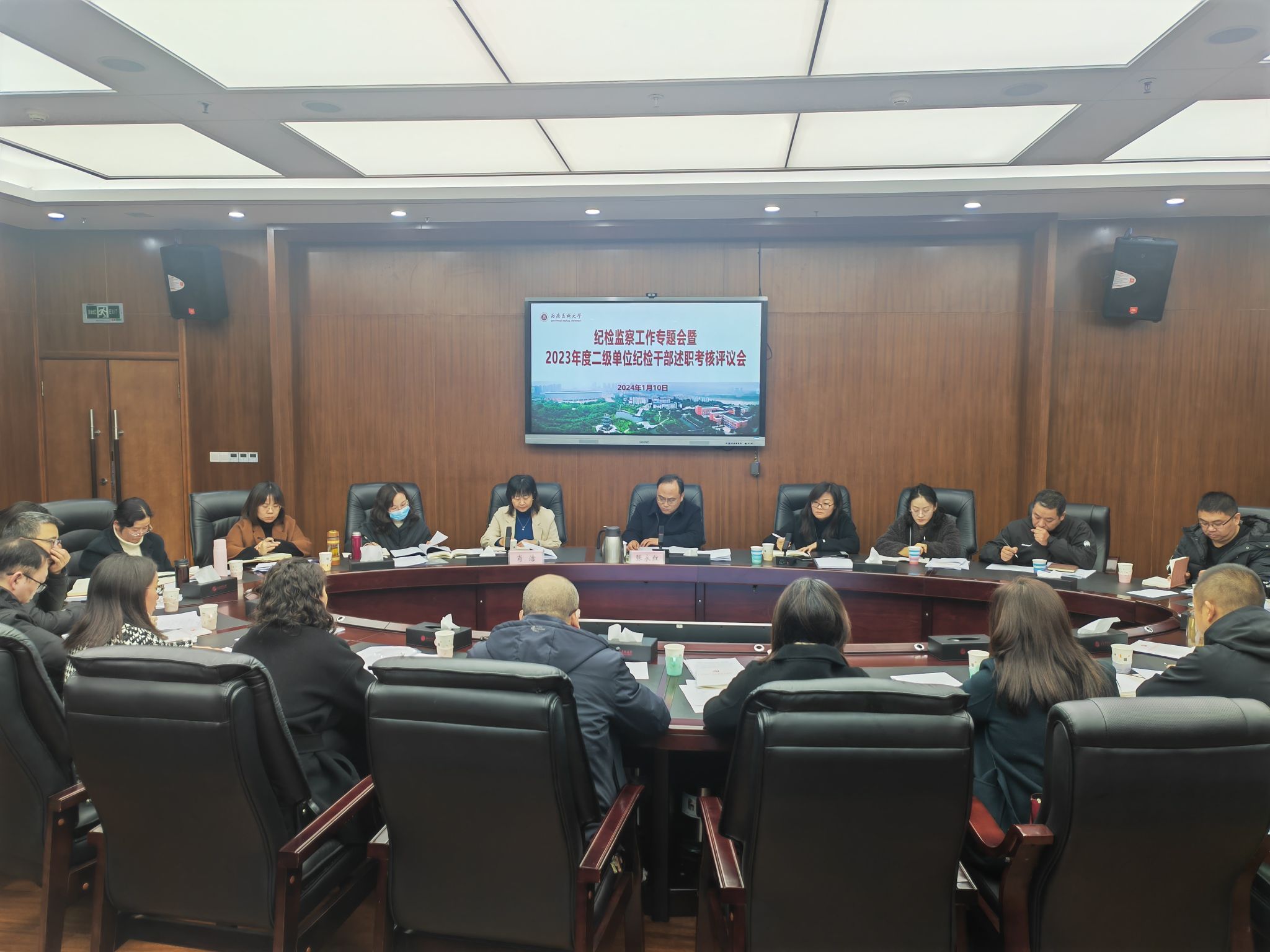 为深入学习贯彻党的二十大精神,认真落实纪检监察干部队伍教育整顿部署要求,激励广大纪检监察干部恪守初心使命、积极担当作为,1月10日下午,驻校纪检监察组、校纪委在城北校区一会议室组织召开纪检监察工作专题会暨2023年度二级单位纪检干部述职考核评议会。会议由驻校纪检监察组组长,校党委副书记、纪委书记张永红主持。