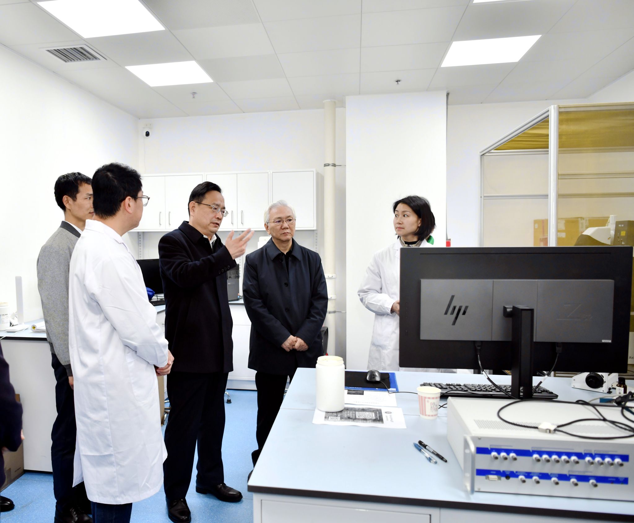 张强一行参观了kaiyun官网科技大楼医学电生理学教育部重点实验室。张春祥重点从实验室的基本概况、研究团队、主攻方向、成果产出等方面作了详细介绍。