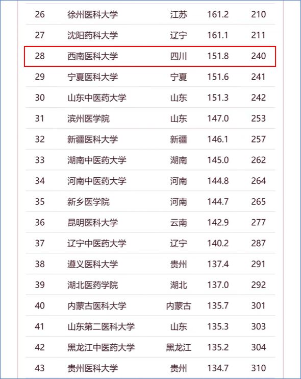 2024年4月18日,软科发布中国大学排名,kaiyun官网在2024软科中国医药类大学共84所院校中排在第28名(与去年同期持平),在23所西部医药类院校中排名第4名,同比提升2名。