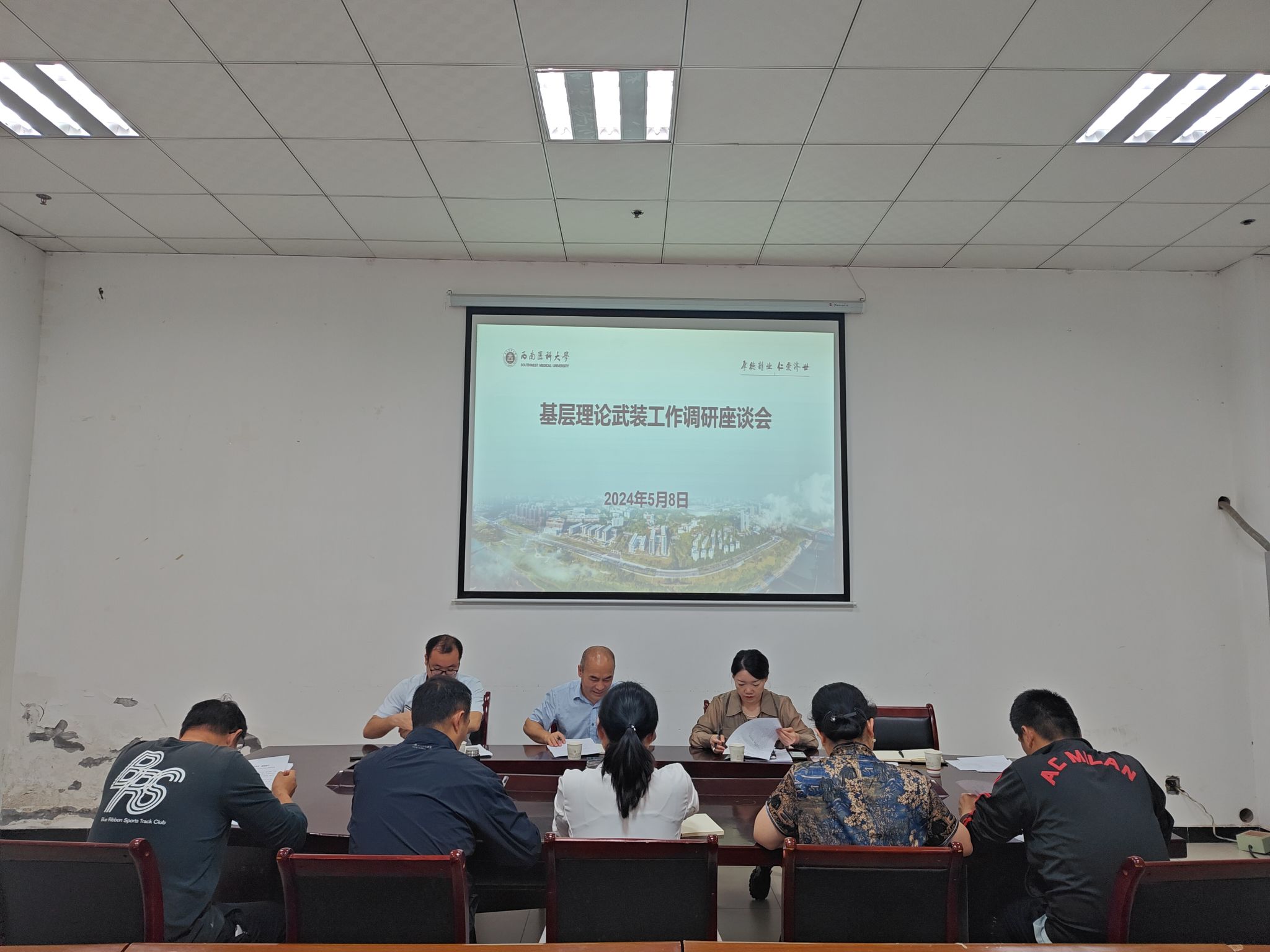 5月8-9日,学校党委常委、党委宣传部·统战部部长冯天明带队,前往体育学院、中西医结合学院·附属中医医院、基础医学院、药学院围绕理论武装工作开展专项调研。各学院领导班子成员、相关科室负责人等参加了调研座谈会。