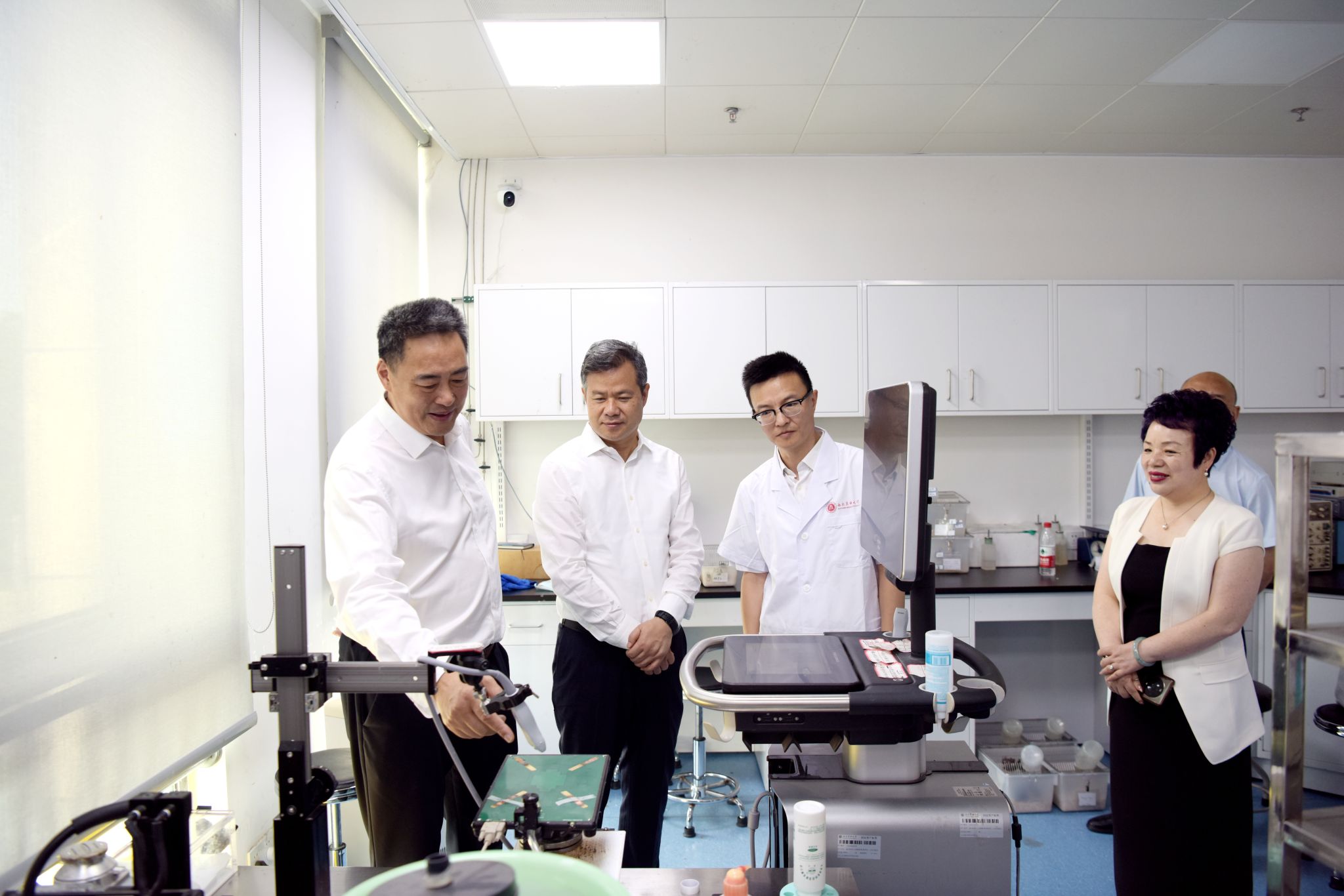 欧阳泽华一行参观了学校科技大楼展厅,廖斌对学校概况、师资队伍、学科专业、科学研究等方面进行全面介绍。随后,在医学电生理学教育部重点实验室,董伟详细介绍了实验室的基本概况、研究团队、主攻方向、成果产出,以及学校引进的海外高层次人才和党外知识分子科研工作情况。欧阳泽华对医学电生理学教育部重点实验室的建设和取得成效给予高度肯定,并对实验室发展提出积极意见建议。