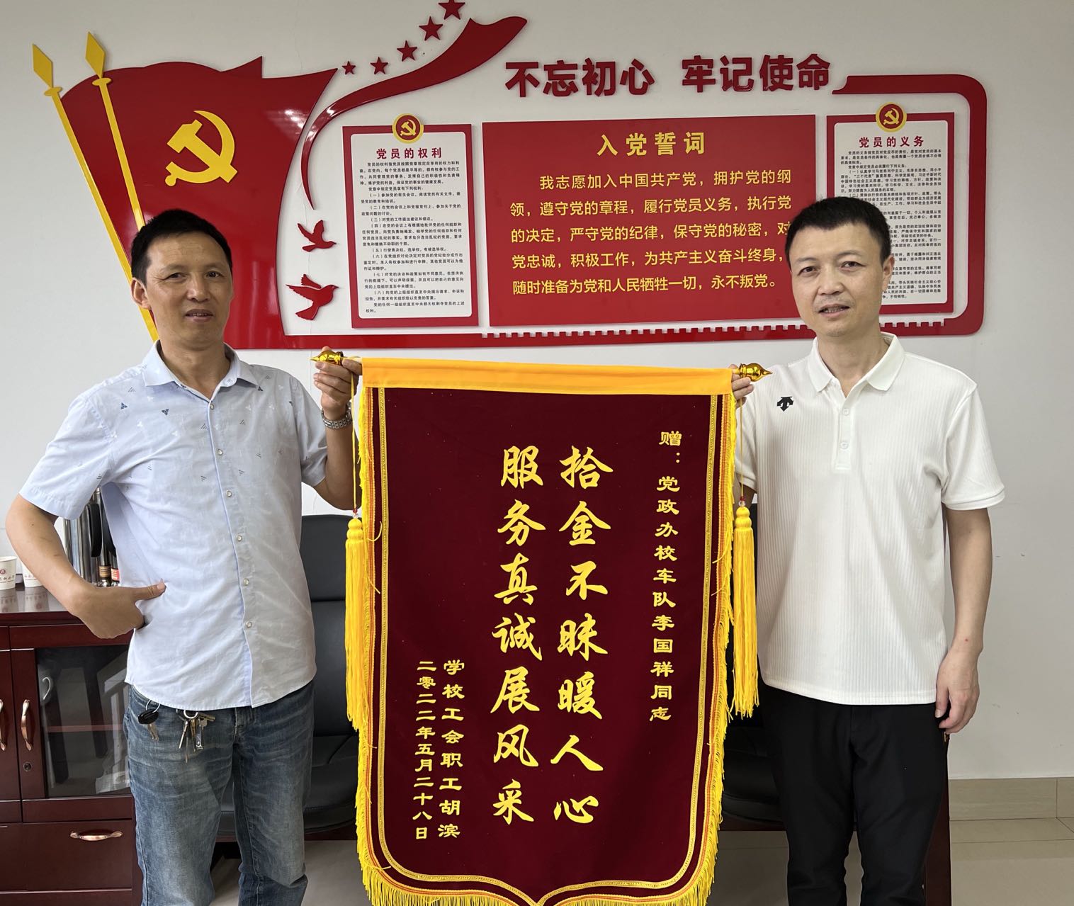 党政办公室主任唐柯指出,对李国祥师傅拾金不昧的行为、心底坦荡的品质表示崇敬;对其在日常工作中展现出来的党政办公室良好工作作风点赞;对车队全体驾驶员长期以来一丝不苟的工作态度及默默无闻为学校事业发展作出的贡献表示感谢;号召部门全体干部职工向李国祥师傅拾金不昧的行为学习!同时,他对部门全体干部职工分享了三点体会和提出希望要求。一是助人为乐、拾金不昧是中华民族优秀传统,传统是不能丢的,传统是需要继承和发扬光大的;二是好人就在身边,好事天天在发生;三是做好事、当好人,不论年龄、不论职务、不论岗位、不论身份、不论大小。希望全体干部职工把好政治的“方向盘”,开足前进的“油门”,守好底线的“刹车”,对外擦亮“车身”,对内优化“内饰”,为学校内涵式高质量发展作出新的更大贡献。