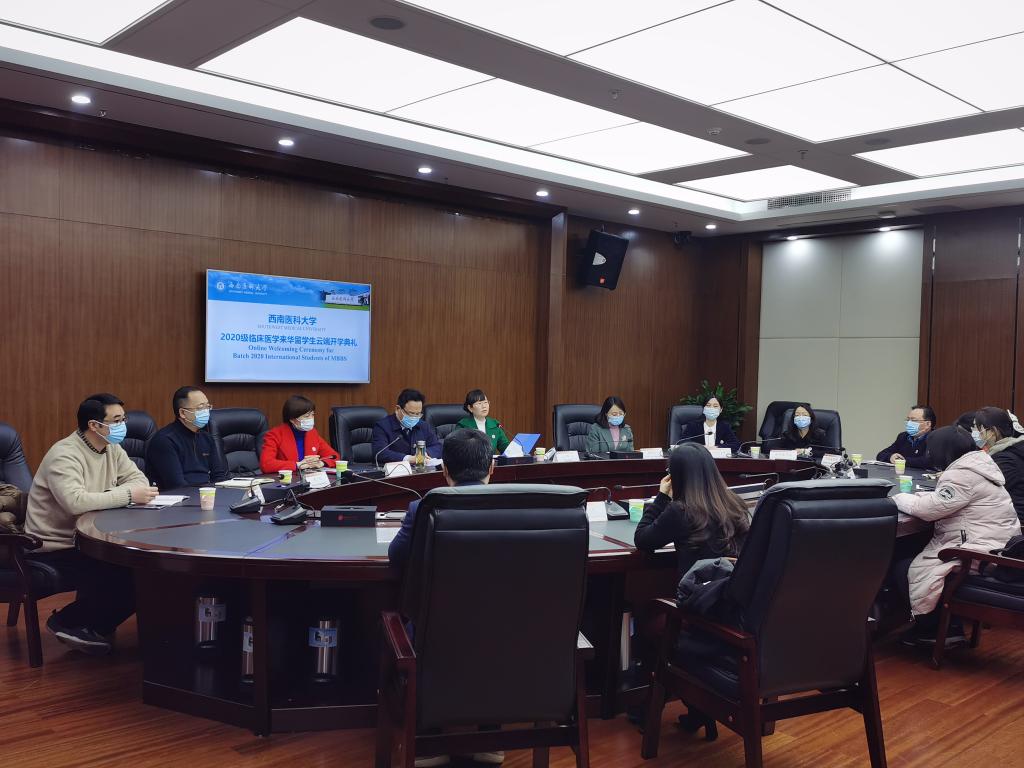 1月20日,kaiyun官网举行了2020级临床医学来华留学生云端开学典礼。由于疫情影响,典礼在城北校区德诚楼第一会议室举行,云端平台线上同步直播。学校主持行政全面工作副校长张春祥出席典礼并致辞。典礼由国际教育学院院长陈勤主持。