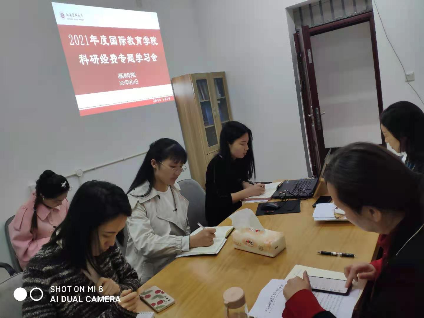 为贯彻落实学校关于“课题项目经费及仪器设备购买使用情况专项督查工作动员会”的精神,4月16日,国际教育学院在殊景楼101会议室开展“科研经费专题学习会”。会议由国际教育学院院长陈勤主持,国际教育学院副院长肖洁主讲,国际教育学院全体人员参加。