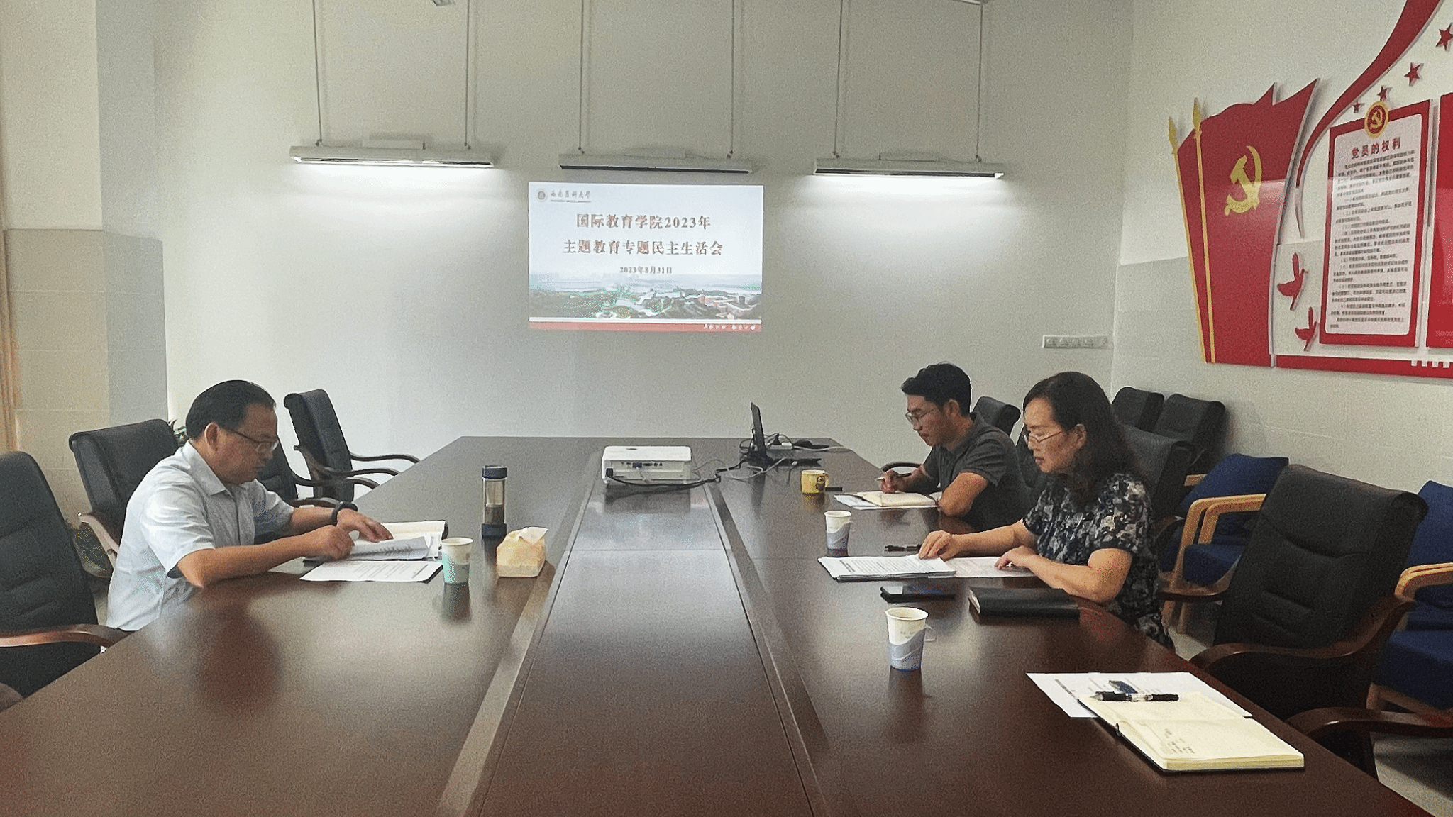 8月31日上午,国际教育学院召开学习贯彻习近平新时代中国特色社会主义思想主题教育专题民主生活会。会议由党支部书记、院长陈勤主持,副院长姚远锟等支部委员参会。外国语学院党委书记周晓昀到会指导。