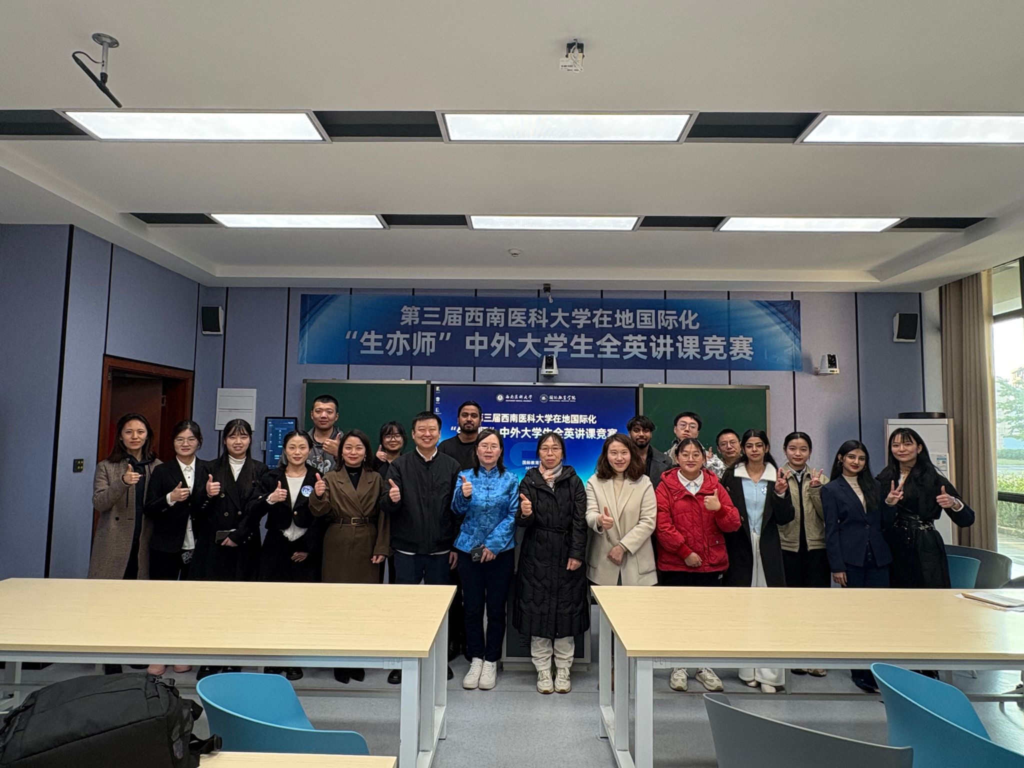 据悉,为保障赛事质量,国际教育学院赛前精心组织专项培训,聚焦全英文教学技巧、跨文化沟通策略及医学专业知识强化。特邀请专家围绕全英文教学语言打磨、PPT可视化设计、课堂互动技巧、双语术语规范等核心模块开展专题培训。各院系组织专业骨干教师担任指导老师进行“一对一”指导。