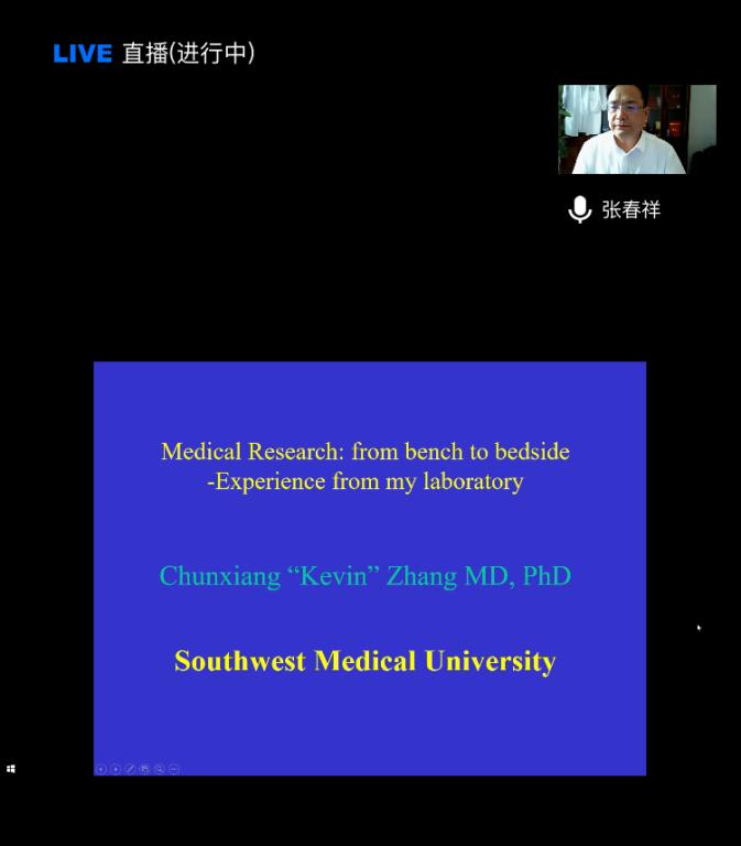 528日下午,学校“校长讲坛”之国际学生医学科研讲座在腾讯会议线上举行。学校党委副书记、校长张春祥作为主讲嘉宾以全英文授课向kaiyun官网临床医学专业国际学生和哈尔滨医科大学的学生畅谈医学科研,开启学生们未来的医学研究启蒙之路。讲座由国际教育学院院长陈勤主持,国际教育学院全体人员参加了本次讲座。