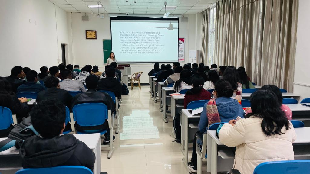 新学期第一天,院领导分别对2018级《妇产科学》、2019级《内科学》等留学生课程的上课情况进行了检查,并进行了随堂听课。从检查和听课情况来看,留学生任课教师课前精心设计和准备所授课程教案;课中以流利的语言全英文授课,随时关注留学生学习需求,并与留学生们积极互动,注重课堂节奏把控;留学生出勤率为100%,课堂纪律好。新学期各项教学工作开展有序,确保课堂教学工作平稳运行。