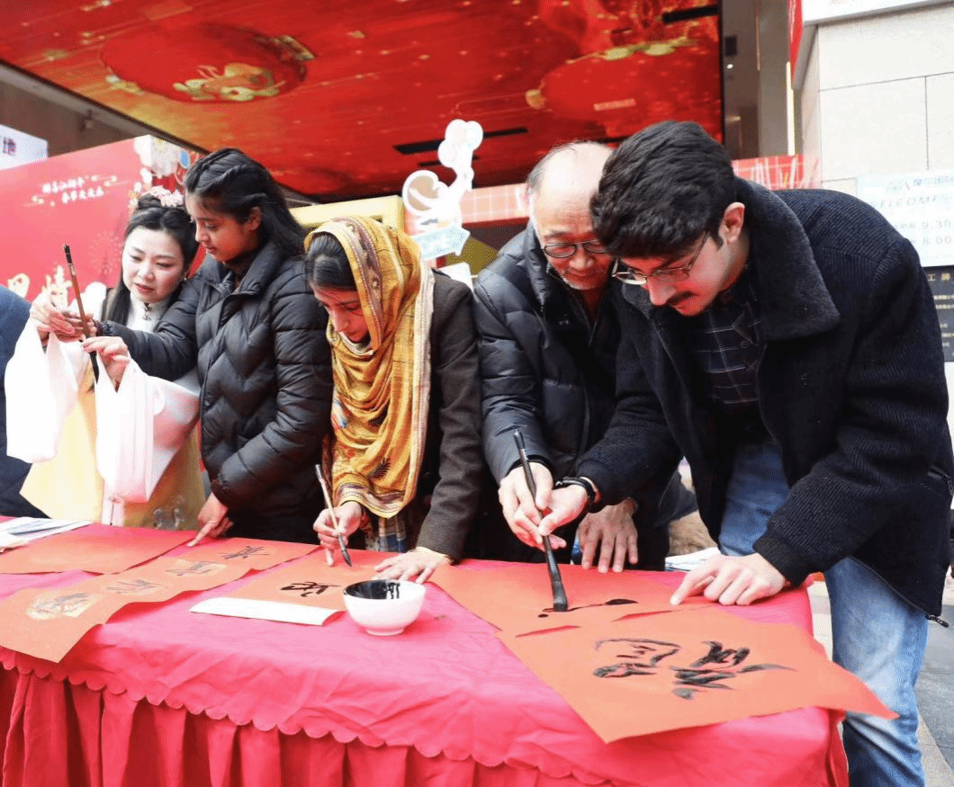 国际学生们现场学习了毛笔的书写方法,亲手写了“福”字,感受到“横如云阵、纵如流瀑、直如垂露、点如星斗”的中国书画之美。来自巴基斯坦的FATIMA说,这次活动非常有意义,老师对腊八节文化的介绍很有趣,让她对中国传统文化有了更浓厚的兴趣,中国春节成为联合国假日,赋予了这一传统佳节更多世界性,将进一步促进世界不同文明的交流互鉴。
