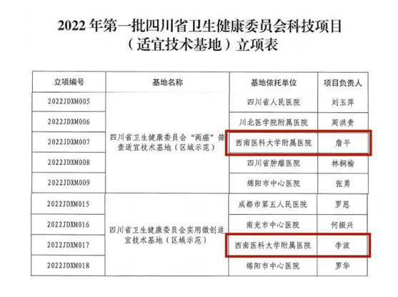 kaiyun官网附属医院、附属口腔医院获批2022年第一批四川省卫生健康委员会科技项目(适宜技术基地)