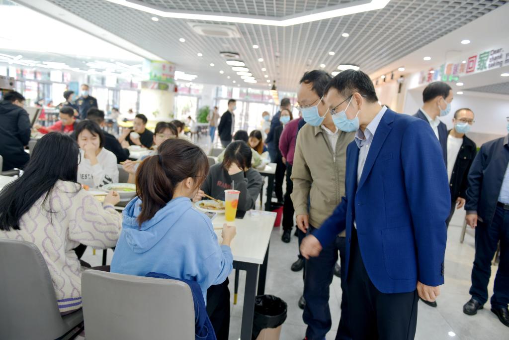 李堂兵强调,学校食品安全关系到广大师生的生命安全和身体健康,是公众关注的焦点和社会舆论的热点。他指出,要认真学习贯彻党的二十大精神,要以学生为中心,全面贯彻落实“以人民为中心”理念,强化政治意识和责任担当,切实增强“等不起”的紧迫感、“慢不得”的危机感、“坐不住”的责任感,紧盯食品安全隐患问题,全面推进食品安全“两个责任”落实落细,切实抓好风险隐患排查,积极推进先进管理模式,提高菜品质量和服务水平,坚决杜绝食品安全事故发生,全力守护师生舌尖上的安全,让师生吃得放心、安心、暖心。