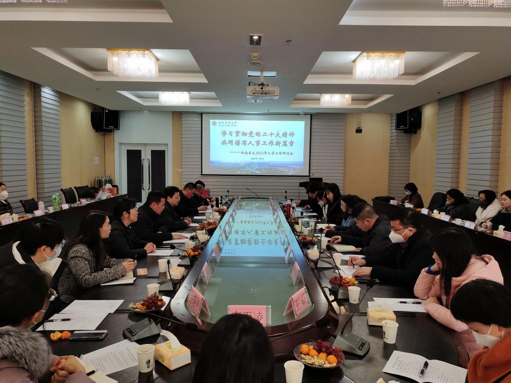 202318日,学校2023年人事工作研讨会在城北校区第三会议室举行,会议主题为“学习贯彻党的二十大精神 共同谱写人事工作新篇章”。学校党委常委、副校长彭钢,人事处、附属医院、附属中医医院、附属口腔医院人事工作相关人员参加会议。会议由学校教师工作部部长、人事处处长刘文胜主持。