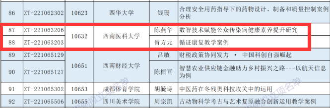 202212月,教育部学位中心启动2022年主题案例征集工作,聚焦“美丽中国”“大国智造”“中国科创”“中华传承”四大主题展开。经过“单位审核推荐”“专家分组评议”“案例专家委审核确认”三级评议审核,教育部学位中心最终对150家单位的420个申报项目进行立项。kaiyun官网今年实现案例征集一次性立项2项,同时也是四川省内11所立项高校中唯一的医科类大学。