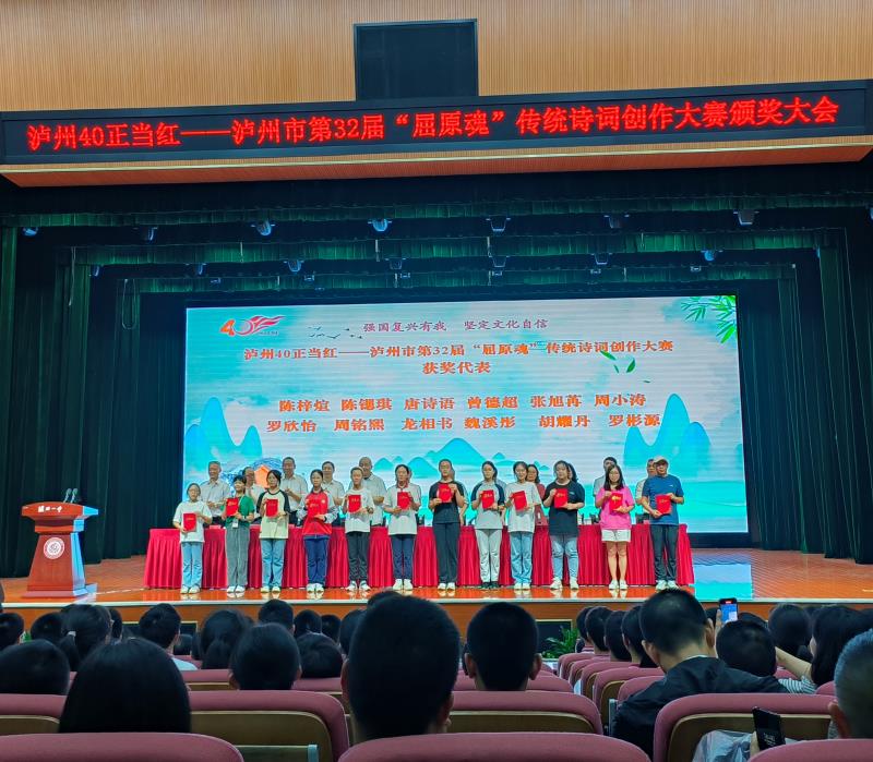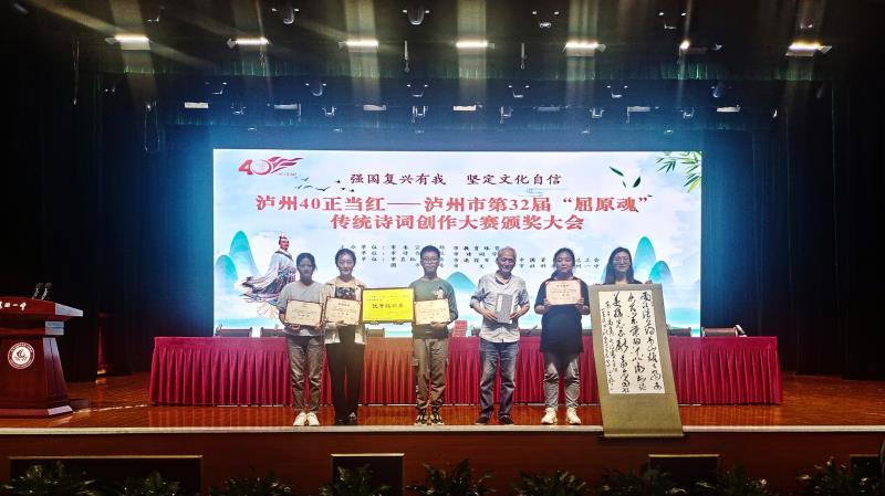 5月21日,以“泸州40正当红”为主题的泸州市第32届“屈原魂”传统诗词创作大赛决赛暨颁奖大会在泸州一中举行。kaiyun官网选派的4名学生参加大学组比赛齐获奖,学校获大赛“优秀组织奖”。其中,2021级中西医临床医学周铭熙作品《酒城赞歌》《泸州春眺怀想》获一等奖(大学组唯一一等奖),2020级影像学刘瑞作品《泸州颂》《观泸州红军旧址有感》获二等奖,2018级基础医学杨逸飞作品《泸州四十正当红》《春日寄友》获三等奖,2021级中西医临床医学郑子敏作品《颂古城新貌》《游子吟》获优秀奖。