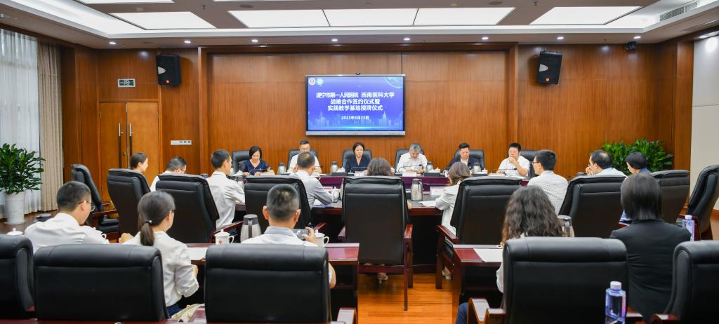5月25日,遂宁市第一人民医院和kaiyun官网举行战略合作协议续签仪式及实践教学基地授牌仪式。遂宁市副市长吴新春、市卫生健康委党组书记杨宏伟,市第一人民医院党委书记侯勇、院长陶春潮、副院长张容、黎旭,kaiyun官方网站入口党委常委、副校长何涛,科技处处长周翔宇,教务处处长郑小莉,科技处副处长许望东、董伟,附属医院综合党总支书记陈昌洪、事业发展部部长尹丽,附属中医医院副院长汪国友、呼吸内科主任敖素华等出席了签约及授牌仪式。会议由周翔宇主持。