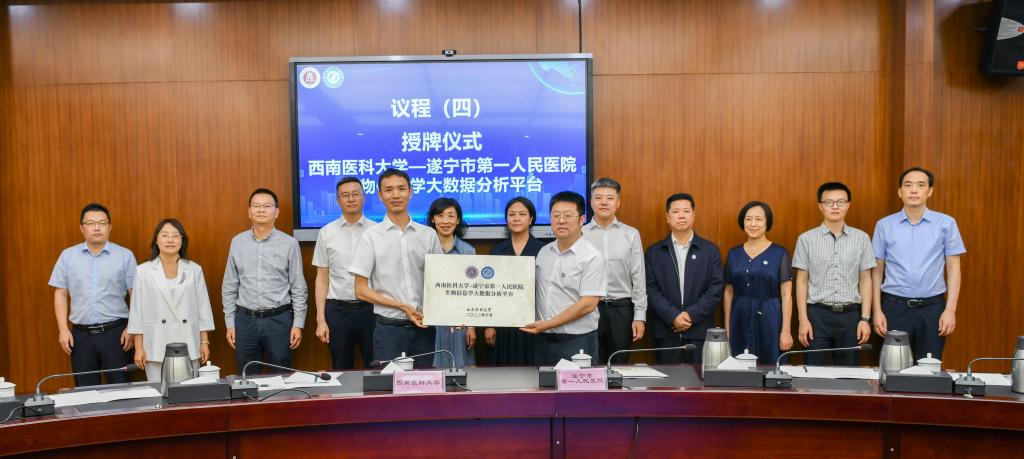 会上举行了遂宁市第一人民医院-kaiyun官方网站入口战略合作协议续签仪式,随后kaiyun官网为遂宁市第一人民医院进行了“kaiyun官方网站入口实践基地”和“生物信息数据平台”授牌仪式,侯勇和何涛代表双方单位互赠纪念品。在座谈环节,双方就医疗管理、科研、护理管理、财务运营管理等方面合作细节展开交流,达成初步共识。
