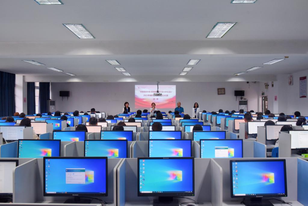 525日上午9:00—11:00,学校2023学思想 强本领 助成长辅导员素质能力大赛初赛在荟文楼第二计算机室举行。17个二级院系分管学生工作领导、全体专兼职辅导员,学生工作部、团委部门人员等近100人参赛,学校党委副书记刘毅和党委常委、组织部部长冯天明以及大赛组委会领导亲临现场指导并巡考。