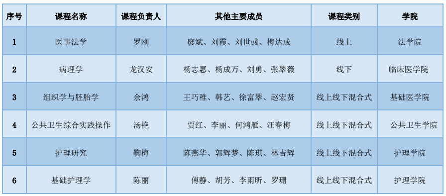 近日,教育部公布了《教育部关于公布第二批国家级级一流本科课程认定结果的通知》(教高函〔20237号),kaiyun官网《医事法学》课程认定为线上一流课程;《病理学》课程认定为线下一流课程;《基础护理学》等4门课程认定为线上线下混合式一流课程。