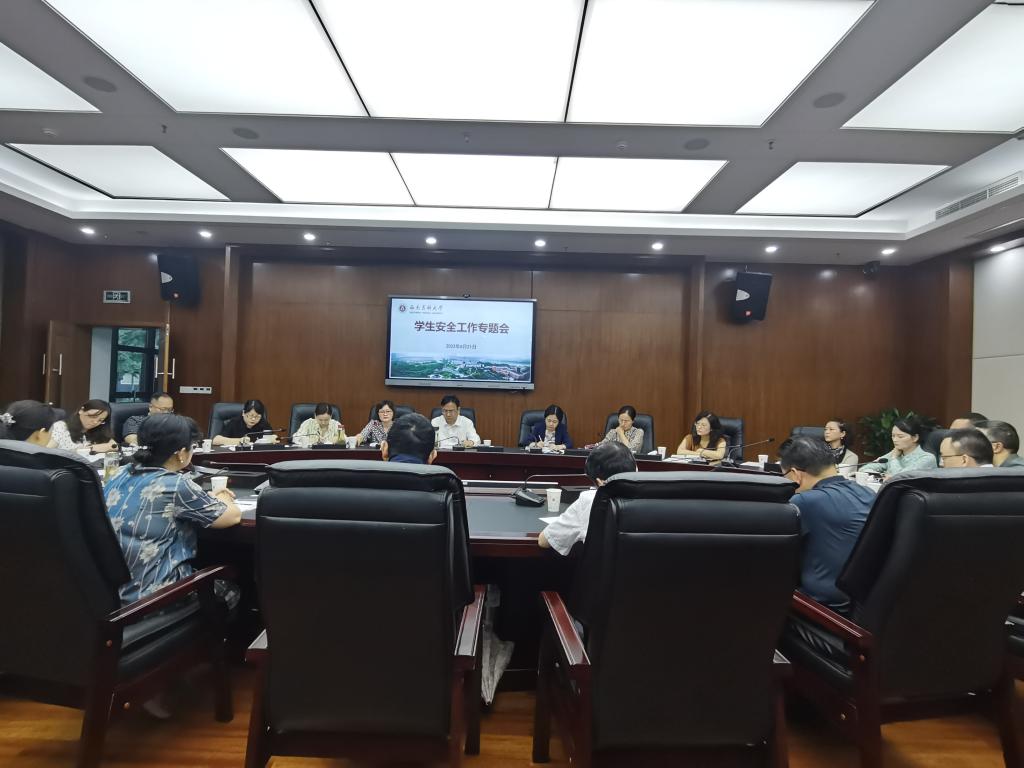 学生工作部部长谭群英通报近期学生安全突发事件,强调学生毕业离校、期末考试、网络舆情、暑期安全等工作,并要求各院系要坚持预防为主,从规范日常管理、深入学生寝室、加强谈心谈话、用好学生干部、建立值班制度等方面入手做细做实学生安全工作,保障校园安全稳定。