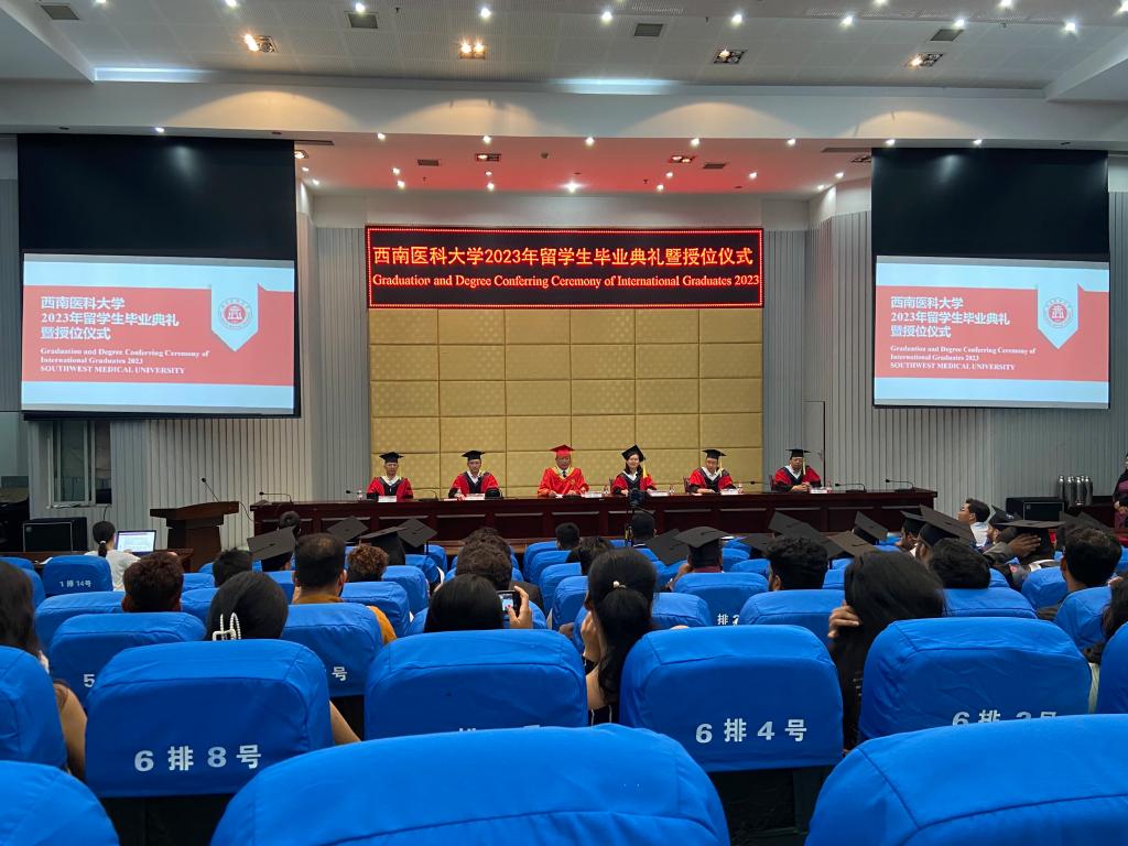 6月28日上午,学校在城北校区第二学术报告厅举行2023年上半年来华留学生毕业典礼暨授位仪式。学校党委副书记、校长张春祥,国际教育学院学位评定分委员会委员代表、留学生教师代表、国际教育学院全体人员、来华留学毕业生及其家人朋友200余人通过线上线下的方式参加典礼,共同见证这一重要时刻,定格永恒的美好记忆。毕业典礼由国际教育学院院长陈勤主持。