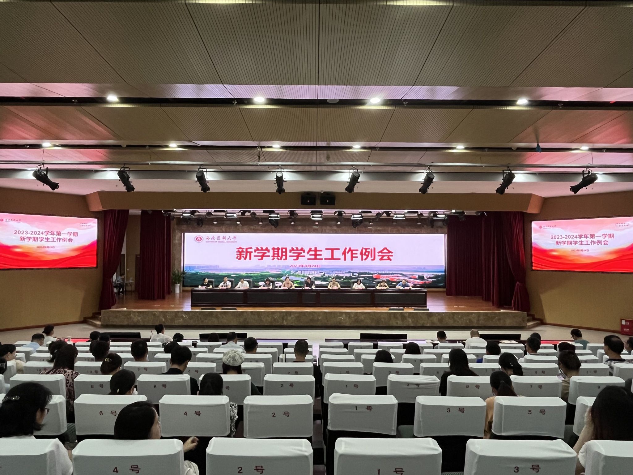 824日下午,2023-2024学年第一学期新学期学生工作例会在城北校区第一学术报告厅召开。学校党委副书记刘毅出席会议并讲话,党政办公室、党委宣传部、武装部、基建后勤处、财务管理处主要负责人,学生工作部、团委全体人员,二级院系专兼职辅导员共计120余人参加了会议。会议由学生工作部部长谭群英主持。