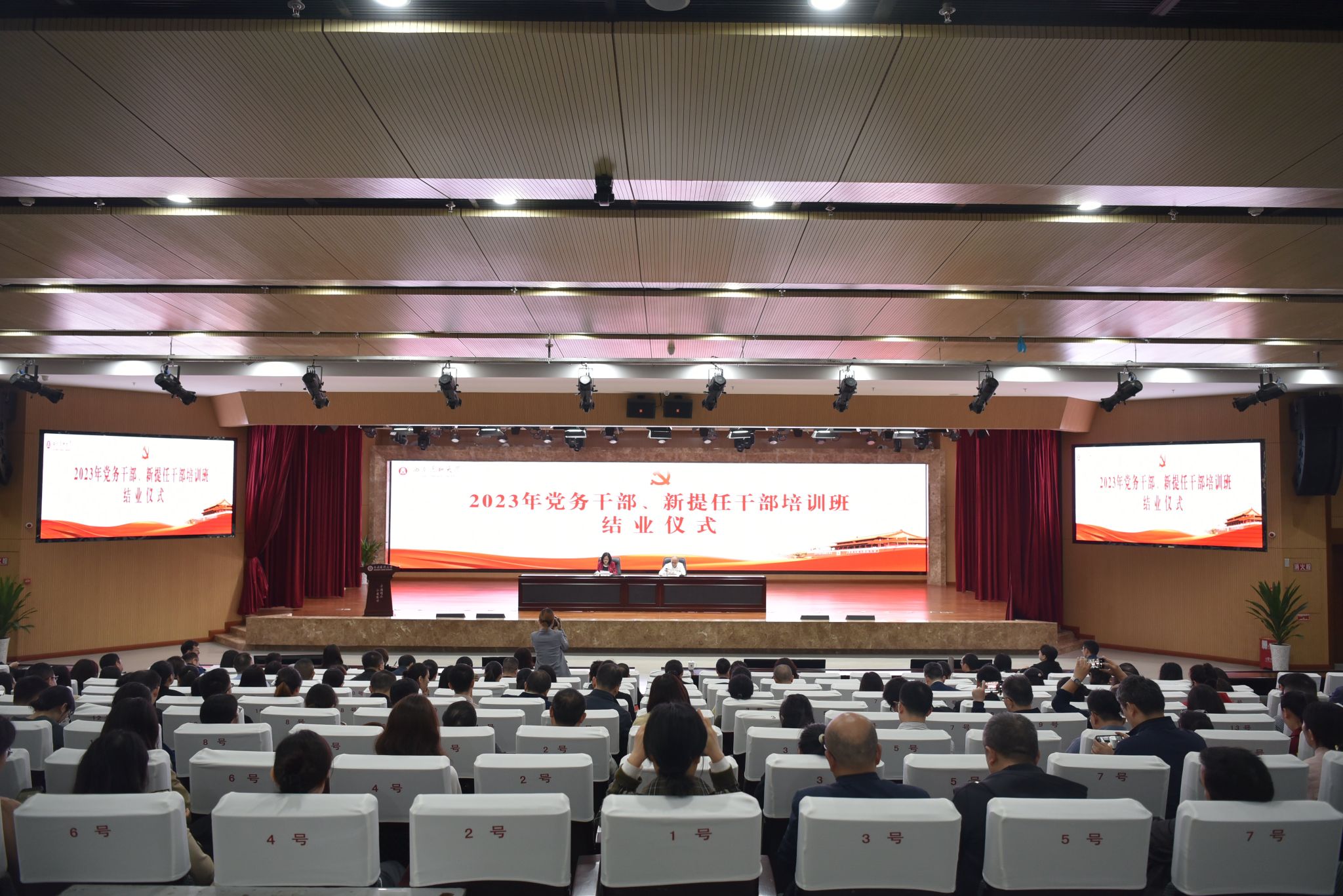 10月20日上午,“贯彻党代会精神、奋进启航新征程”学校2023年党务干部、新提任干部培训班结业仪式在城北校区第一学术报告厅举行。学校党委副书记、工会主席刘毅出席并作讲话,党委常委、组织部长冯天明出席仪式。结业仪式由党委组织部副部长李星主持。全校二级党组织书记、副书记,附属医院党委、附属中医医院党委下辖党总支书记,专职组织员,全校党支部书记,2022年以来新提任的处科级领导干部参加了结业仪式。