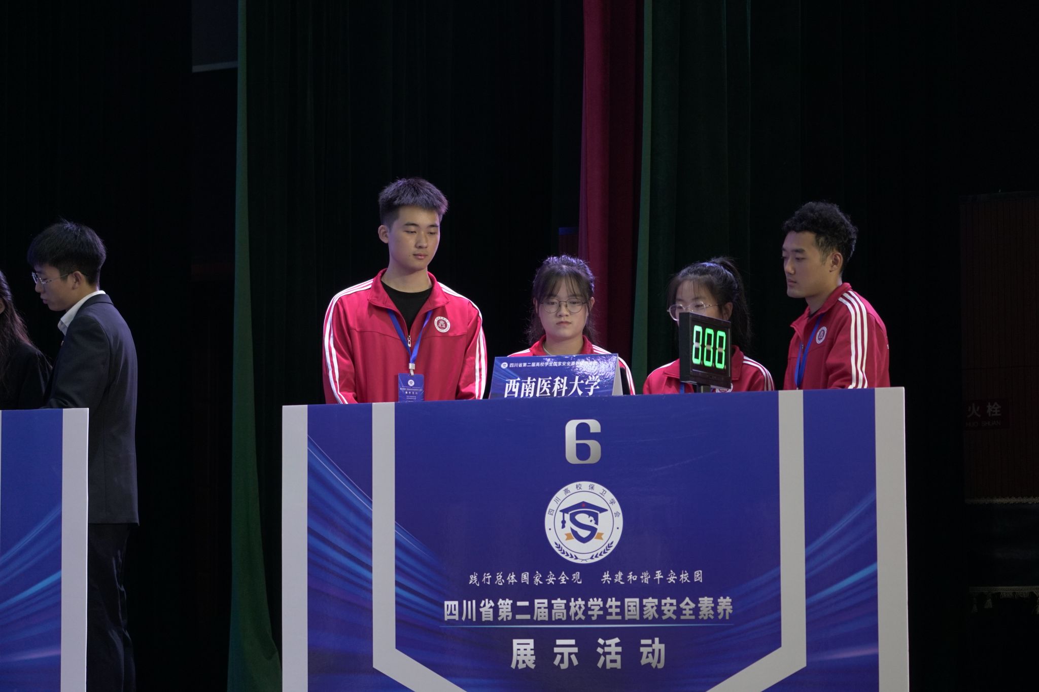 1027-29日,由四川省教育厅、国安厅、公安厅指导,四川省高等教育学会高校保卫学专业委员会主办,乐山师范学院承办的四川省第二届高校学生国家安全素养展示活动成功举行。经过激烈角逐,由保卫处廖磊同志担任领队,由基础医学院2022级周利坤、药学院2022 级罗秋月、中西医结合学院2022级吴红、体育学院2022级杨孟坤4名学生组成的学校代表队最终获得本次比赛二等奖。