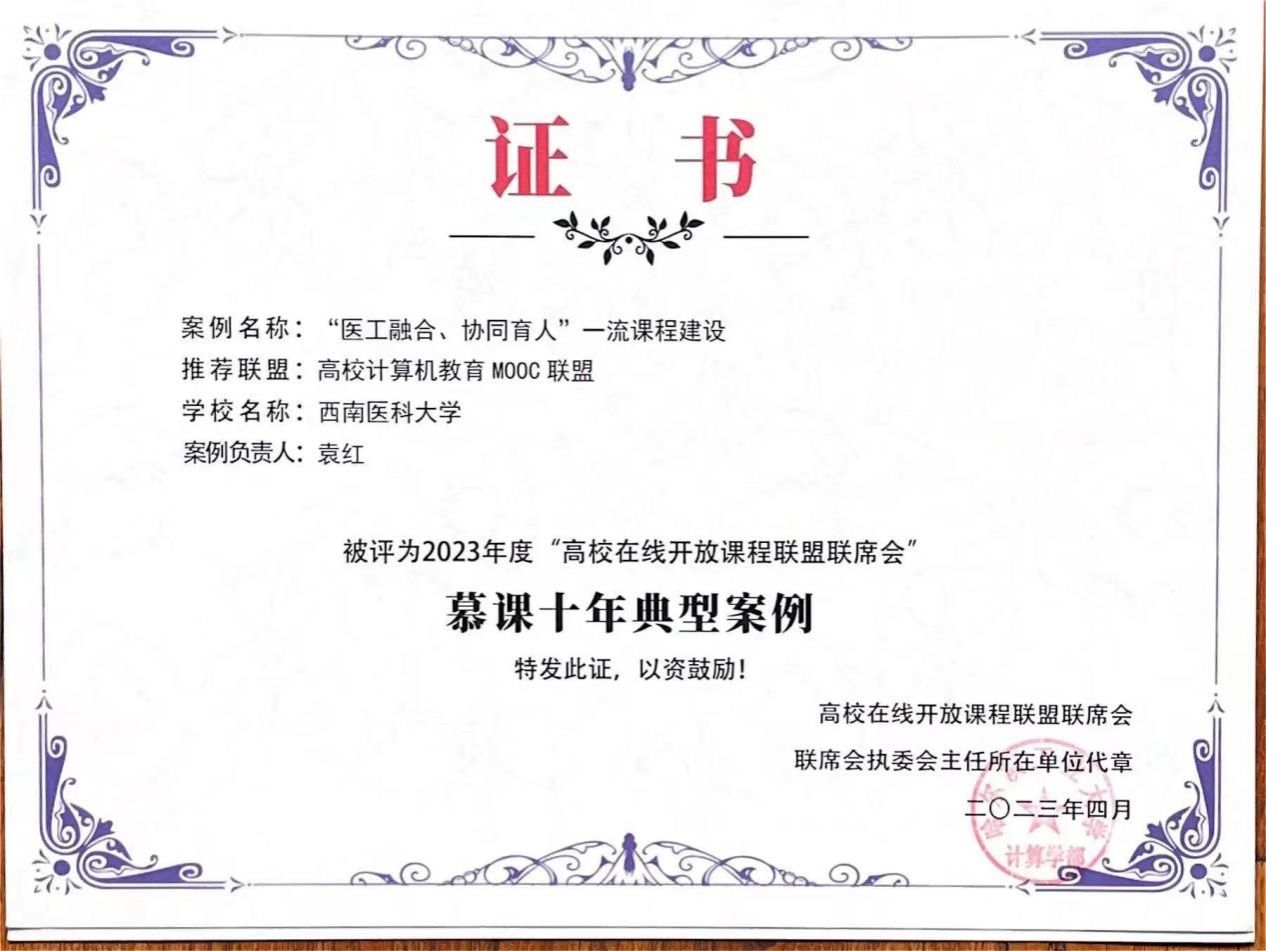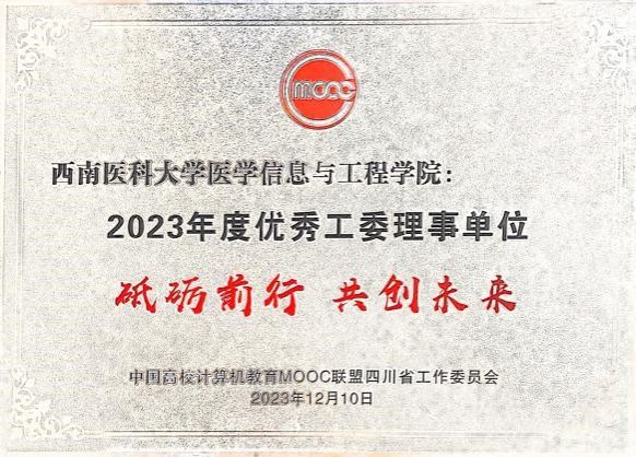 kaiyun官网医学信息与工程学院获中国高校计算机教育MOOC联盟四川省工作委员会2023年度优秀工委理事单位。医学信息与工程学院院长罗亚梅获“2023年度优秀工委成员”荣誉称号。医学信息与工程学院网络技术教研室主任袁红撰写的案例获评“2023年度‘高校在线开放课程联盟联席会’慕课十年典型案例”。